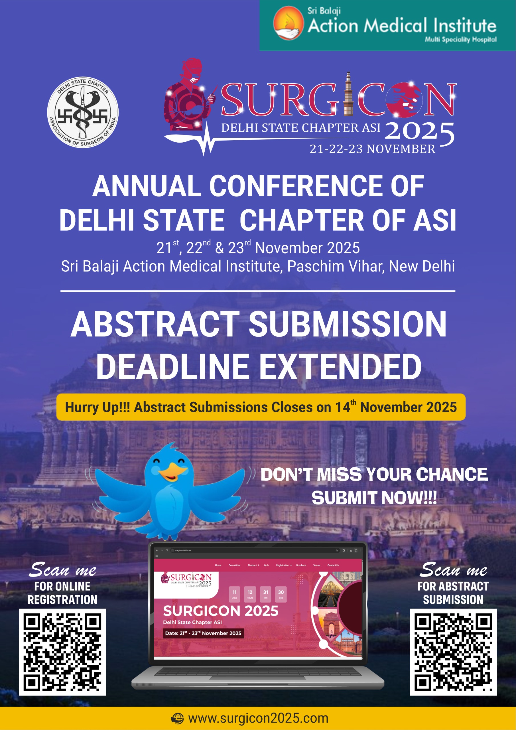 The Department of Surgery, Shri Balaji Action Medical Institute, New Delhi, is delighted to extend a warm welcome to all delegates and faculty attending SURGICON 2025, our annual conference dedicated to advancing surgical excellence.